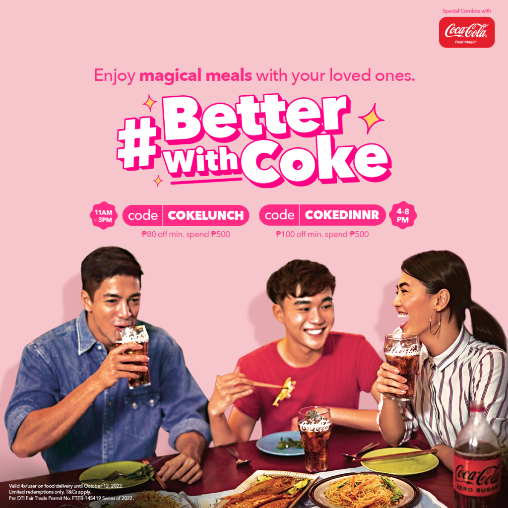Ready to order? Download the foodpanda app and startmaking your favorite meals #BetterWithCoke, available onthe Google Play Store (Android) and Apple App Store (IOS).